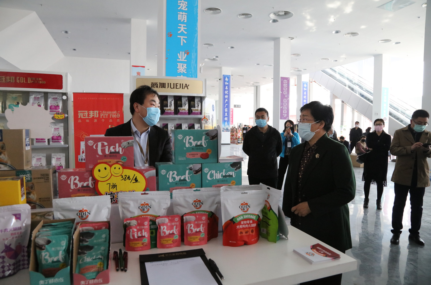 開展期間,南和縣縣委書記李勝敏一行親臨現(xiàn)場查看展會活動,并對華興寵物食品進行指導關懷。